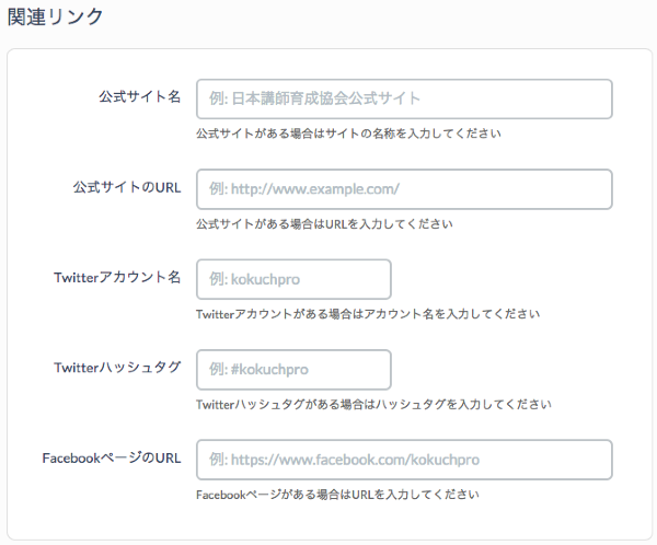 | FacebookページのURL | Facebookページがある場合はURLを入力してください |