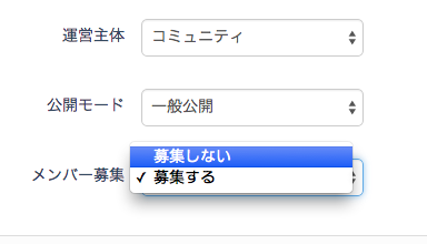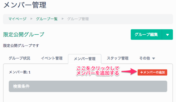 メンバーの募集を制限する こくちーずプロ サポートセンター 2024年08月24日 05:18 更新 グループ登録の際に、メンバー募集を「募集しない」に設定しておくと、グループページでメンバーの募集を行わないようになります。 メンバーは、グループの管理ページのメンバー管理で追加することができます。 グループ登録後に、メンバー募集を制限する場合は、グループの管理ページのグループ設定で行うことができます。 関連記事 グループのメンバー募集を申請式にする メンバーリストを表示しないようにする グループの設定 特定のユーザーの申し込みを拒否したい グループの新規登録