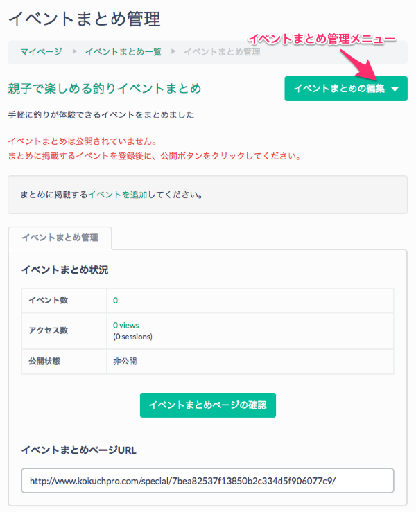 イベントまとめを登録すると、まとめ毎に管理ページが用意されます。