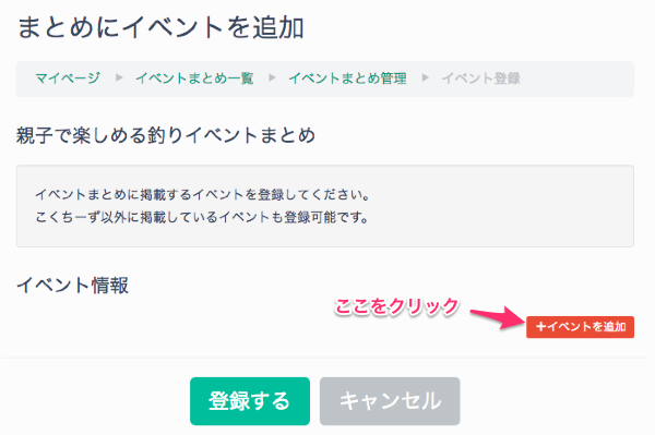 続けてイベントを登録する場合は、「イベントを追加」ボタンをクリックします。