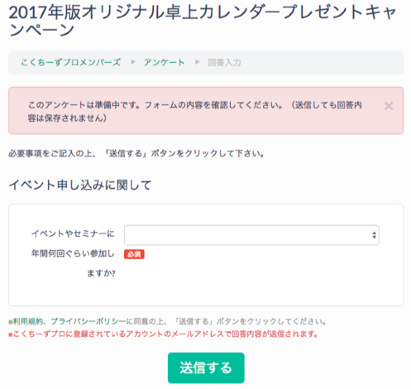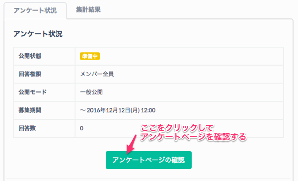 公開前の場合は、「アンケートは準備中です。公開はされていません。」のメッセージが表示されます。